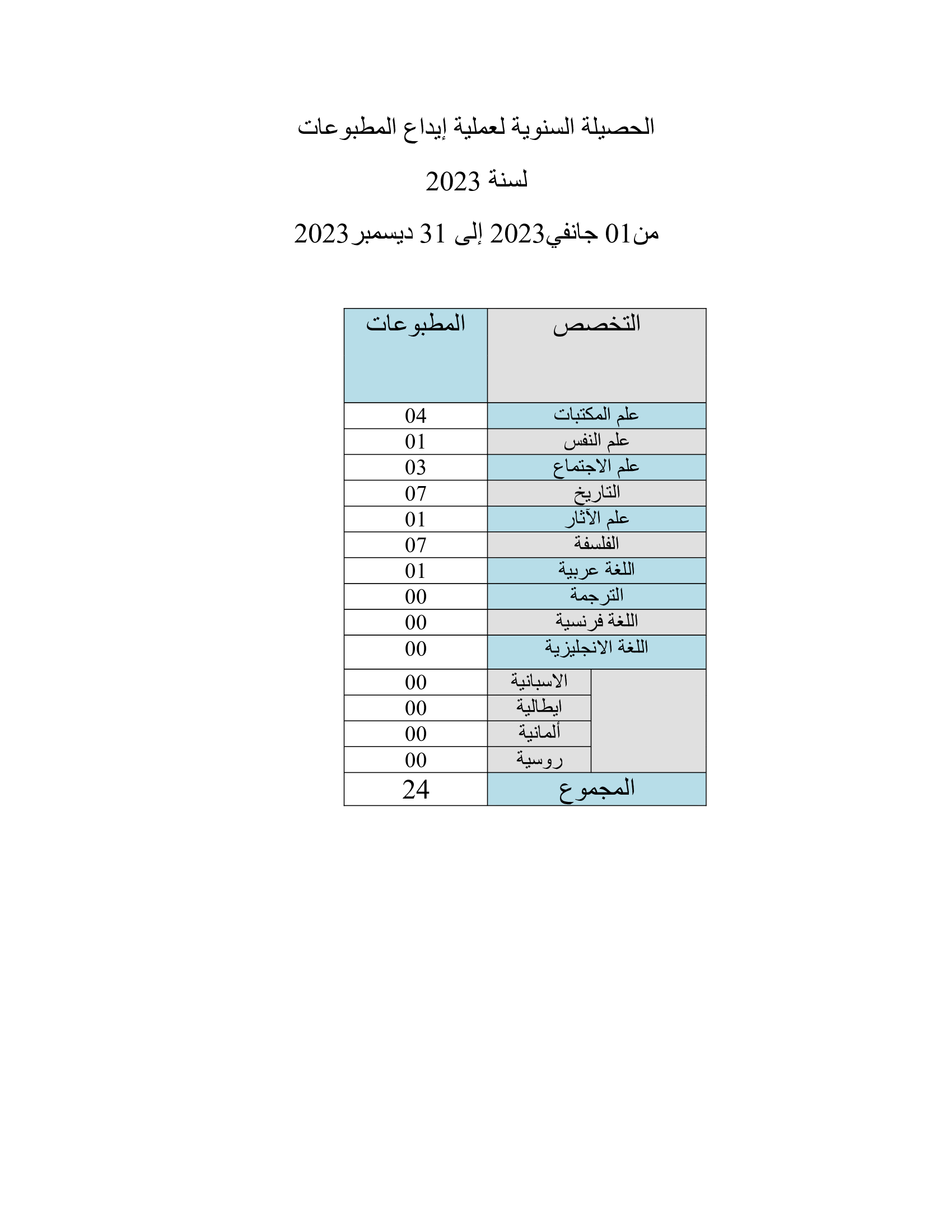 الحصيلة السنوية لإيداع المطبوعات لسنة 2023
