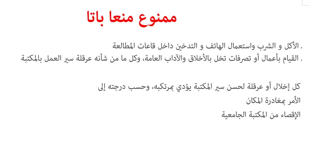 – تسليم و استلام شهادة الإفادة للطلبة للاستفادة من خدمات المكتبة